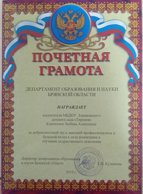 Корчемаха Любовь Алексеевна - воспитатель высшей категории Злынковского детского сада " Теремок" .