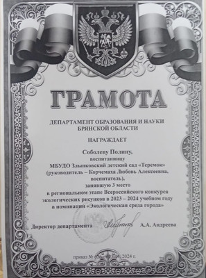Региональный этап Всероссийского конкурса экологических рисунков- 3 место 2024